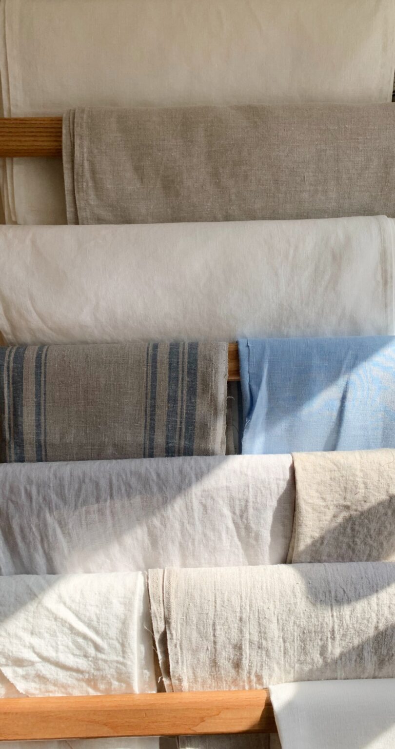 Heavy weight, also known as “rustic” linen. Soft but sturdy. Retains absorbent quality with repeated use. (Some would insist that absorbency improves with use!). A great choice for tea towels and chef aprons.